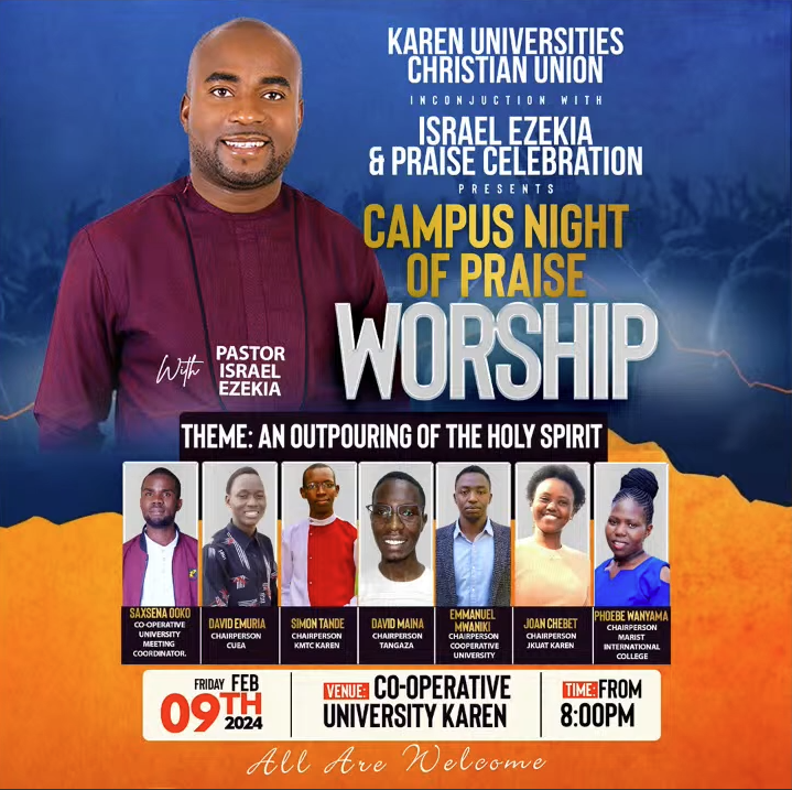 On the 9th of February, 2024, CUKCU Hostel a night of worship experirence at the Cooperative University's Room A, hosting campuses within Karen and some from within Nairobi